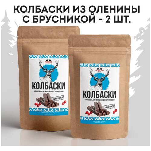 Колбаски сырокопченые Ломоть из мяса дикого северного оленя с Брусникой 2 пачки по 60 г