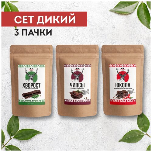 Мясо дикого северного оленя ТМ Ломоть "Дикий сет" ( юкола, хворост, чипсы) 3 пачки
