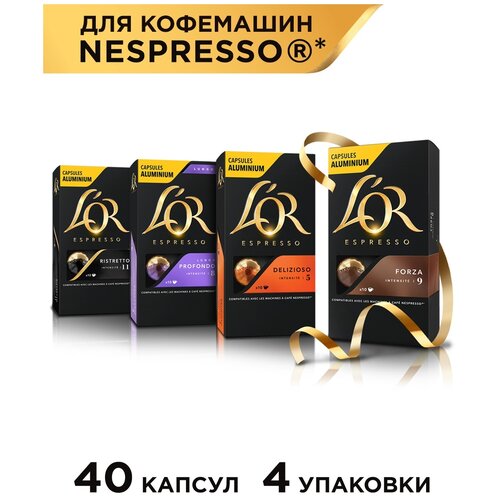 Набор кофе в капсулах L’OR Lungo Profondo, Ristretto, Delizioso, Forza, 10 кап. в уп., 4 уп.