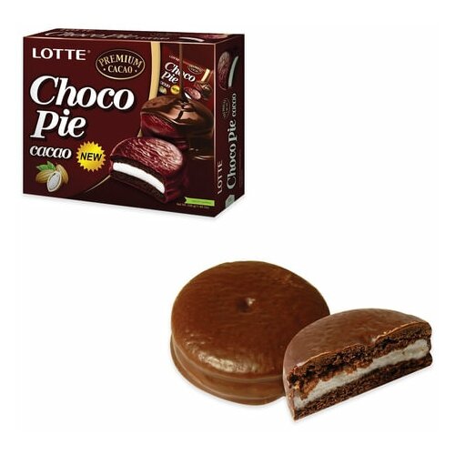 Печенье LOTTE "Choco Pie Cacao" ("Чоко Пай Какао"), глазированное, картонная упаковка, 336 г, 12 шт. х 28 г, 2 уп.