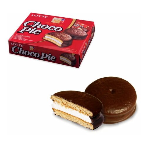 Печенье LOTTE "Choco Pie" ("Чоко Пай"), прослоенное, глазированное, в картонной упаковке, 336 г (12 штук х 28 г)