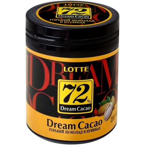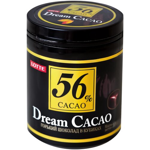 Шоколад LOTTE "Dream Cacao", горький (какао 56%), в кубиках, в пластиковой банке, 106 г