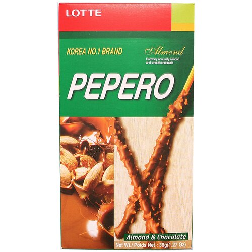 Соломка в шоколадной глазури с миндалем Альмонд Пеперо (Almond Pepero), 36гр