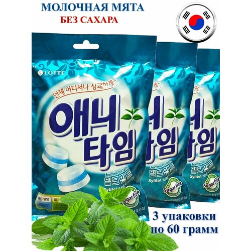 Леденцы AnyTime (Энитайм), без сахара, со вкусом Молочной Мяты, 3 упаковки