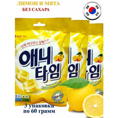 Леденцы AnyTime (Энитайм) без сахара, со вкусом Лимона и Мяты, 3 упаковки