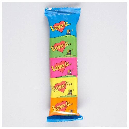Жевательная резинка LOVE IS, ассорти вкусов, 21 г (5 шт. по 4,2 г), флоу-пак, 70471
