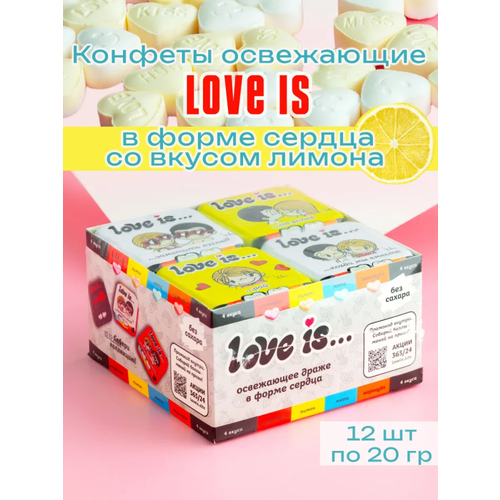 ОСВЕЖАЮЩИЕ КОНФЕТЫ "LOVE IS" в форме сердца со вкусом лимона и морской соли 12 шт по 20 гр
