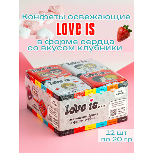 ОСВЕЖАЮЩИЕ КОНФЕТЫ "LOVE IS" в форме сердца со вкусом клубники 12 шт по 20 гр