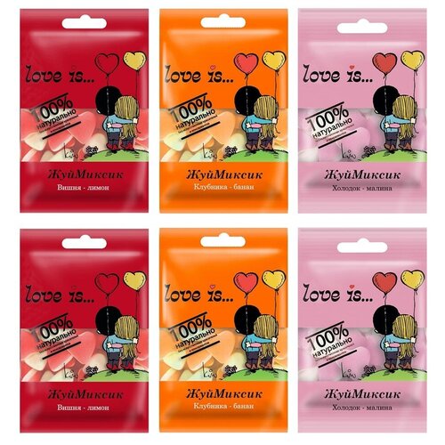 Набор жевательного мармелада Love is холодок-малина + вишня-лимон + клубника-банан (6 шт. по 25 гр.)