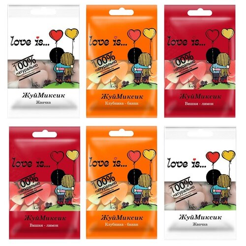 Набор жевательного мармелада Love is клубника-банан + жвачка + холодок-малина (6 шт. по 25 гр.)