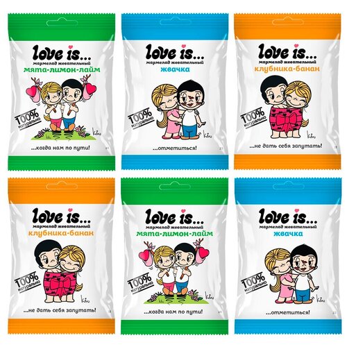 Набор жевательного мармелада Love is клубника-банан + жвачка + мята-лимон-лайм (6 шт. по 25 гр.)