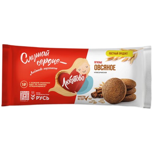 Печенье Любятово Овсяное классическое, 200 г, 8 шт