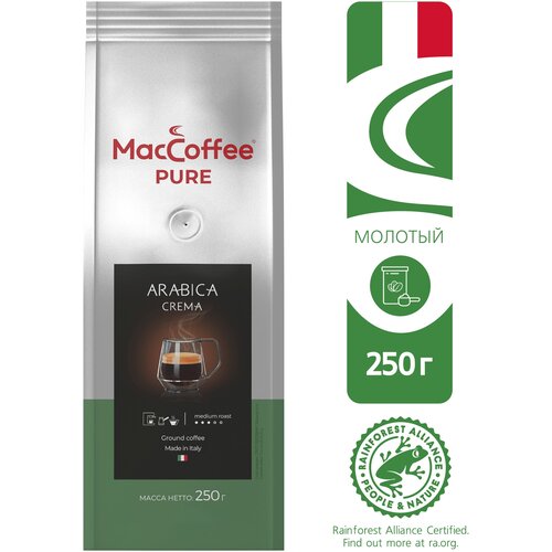 MacCoffee Pure Arabica Crema 250г х 12 в/у мол Италия