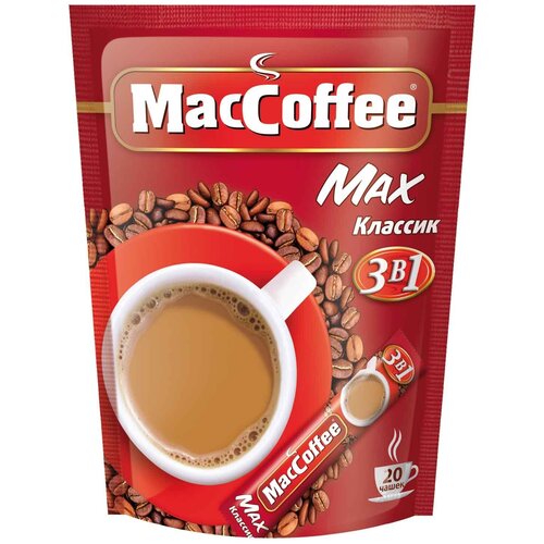 Растворимый кофе MacCoffee Max Классик 3 в 1, в стикахкофе, классический, 20 уп., 16 г