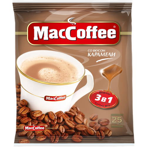 Растворимый кофе MacCoffee Карамель 3 в 1, в пакетиках, 25 уп., 450 г