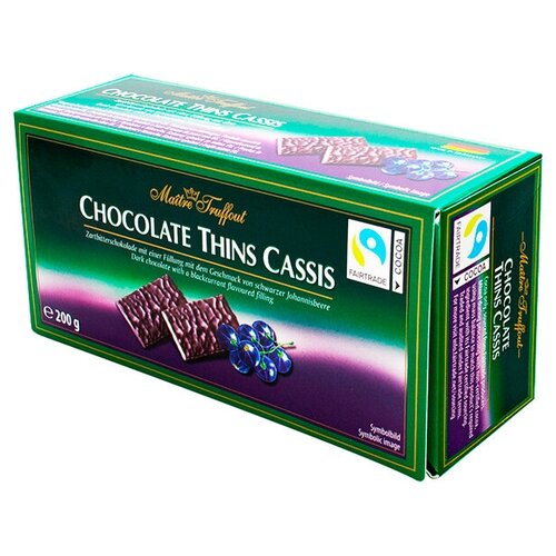 Maitre truffout Темный шоколад с начинкой черная смородина в пластинках, 200 г (Германия)