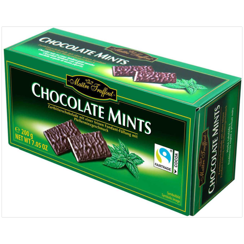 Maitre truffout Темный шоколад с мятной начинкой в пластинках, 4шт по 200 г (Германия)