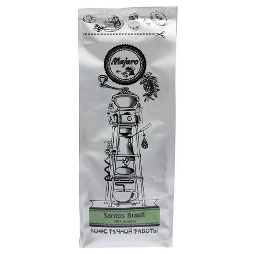 Кофе MAJARO обжаренный в зернах Santos Brasil 100% Arabica, 250 г