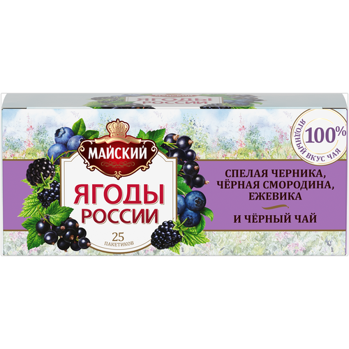 Чай черный Майский Спелая черника, черная смородина и ежевика ароматизированный в пакетиках, 25 пак.