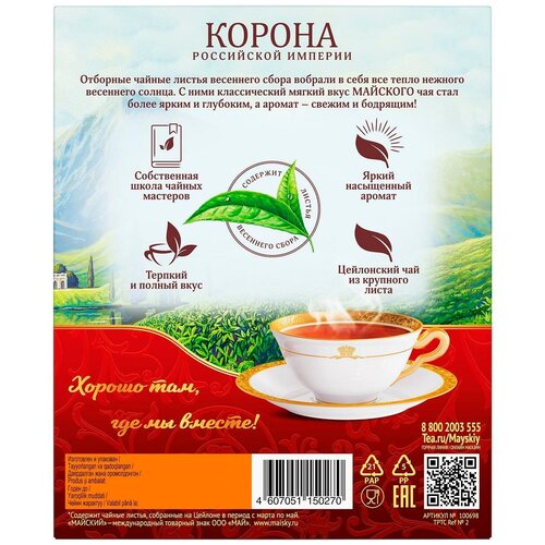 Чай чёрный пакетированный МАЙСКИЙ "Корона Российской империи" 25 пакетиков по 2г, цейлонский, байховый,