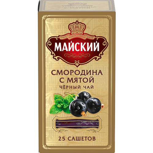 Чай черный майский "Смородина с Мятой" ароматизированный цейлонский байховый 25 сашетов