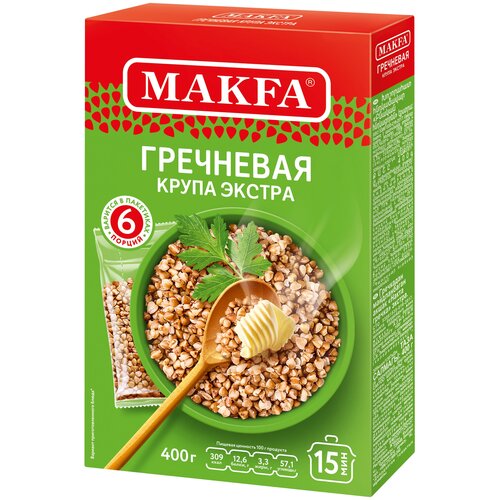 Упаковка 9 штук Гречневая ядрица Макфа 400г (6 х 66,5г)(54 пакетика)
