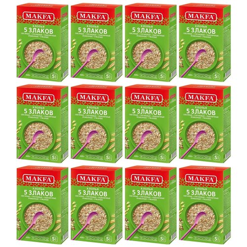Упаковка 12 штук Хлопья Макфа гречневые 450г