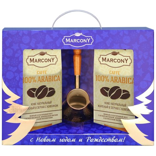 Новогодний подарочный набор кофе в зёрнах MARCONY 100% ARABICA 2 шт. и джезва 500гр