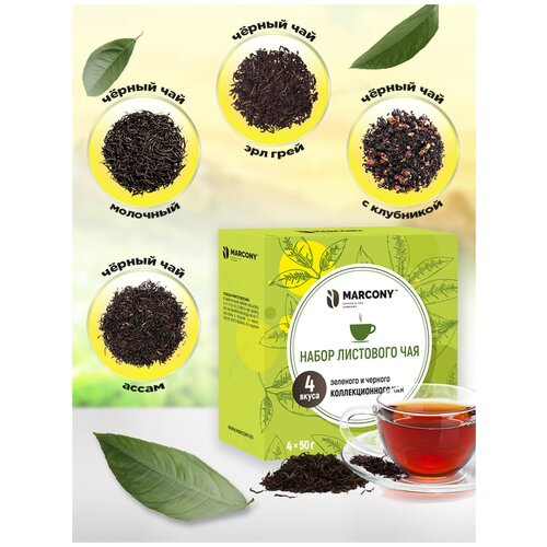 Набор листового чёрного чая MARCONY 4 вкуса 200г (50гх4шт)