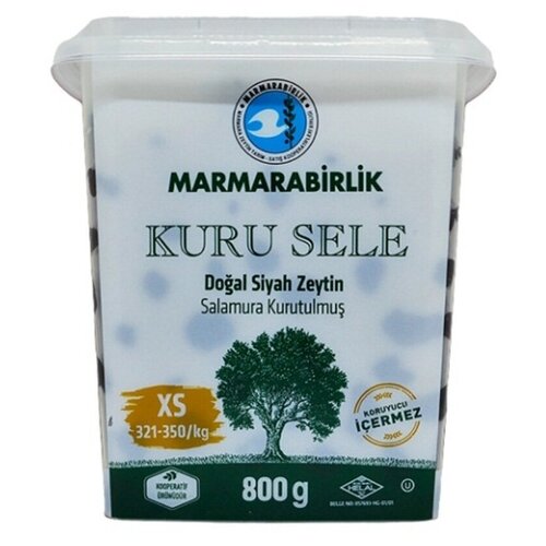 Оливки вяленые черные натуральные с косточкой Kuru Sele LUX 3XS Marmarabirlik 800 г, пласт. уп-ка.
