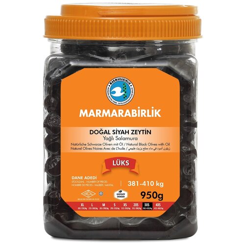 Оливки черные натуральные MARMARABIRLIK 3XS (381-410), с косточкой, пл/б, нетто 965 г