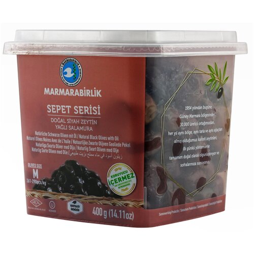 Оливки с маслом черные натуральные MARMARABIRLIK SEPET SERISI M (261-290), с косточкой, пл/б, нетто 410 г