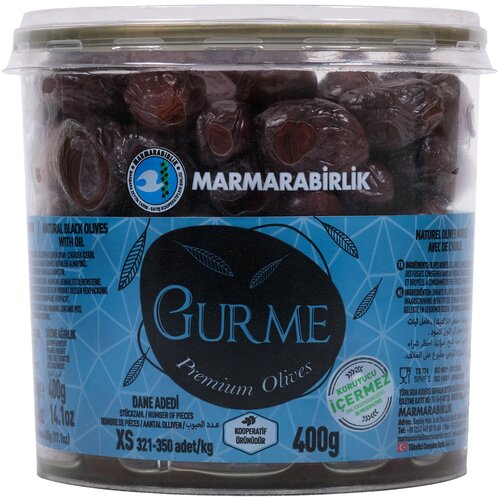 Оливки черные натуральные MARMARABIRLIK Gurme XS (321-350), с косточкой, пл/б, нетто 410 г