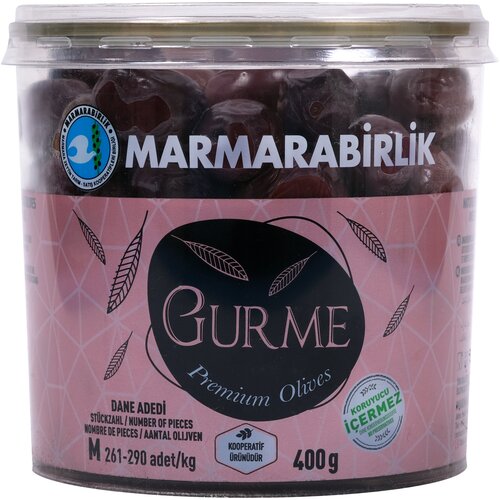 Оливки черные натуральные MARMARABIRLIK Gurme M (261-290), с косточкой, пл/б, нетто 410 г