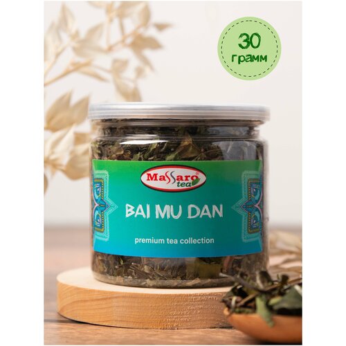 Чай белый премиум Bai Mu Dan Massaro tea в банке ПЭТ с крышкой easy open 30г/Бай Му Дань