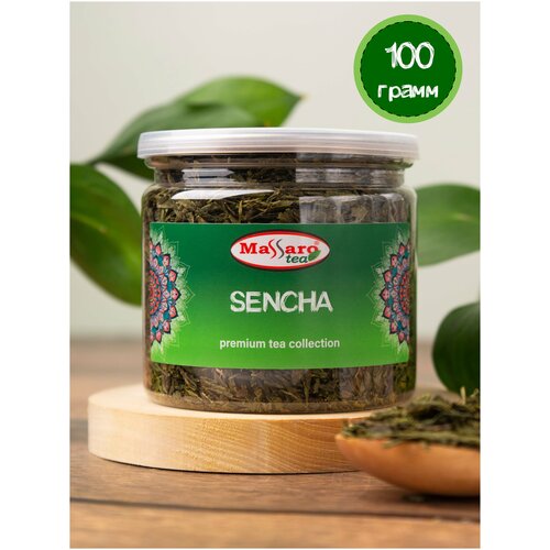 Чай зеленый китайский Сенча Massaro tea 100гр в банке ПЭТ easy open
