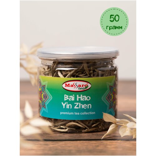 Чай белый китайский премиум Бай Хао Инь Чжен Massaro tea в банке 50г/ Bai Hao Yin Zhen