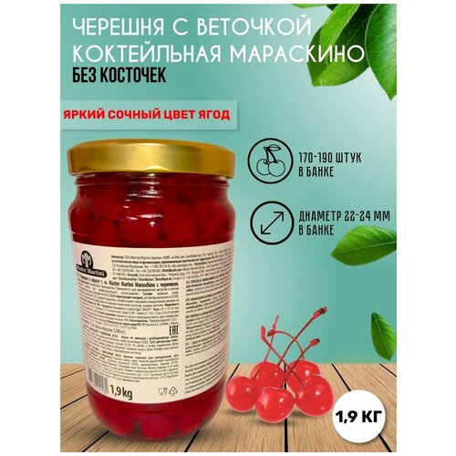 Черешня коктейльная с веточкой Мараскино 170-190 шт в банке