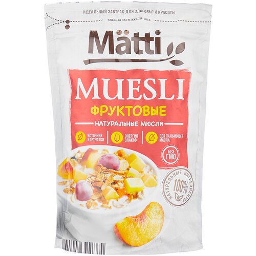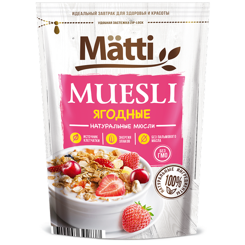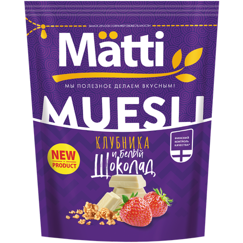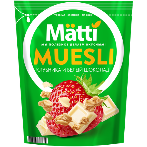 Мюсли Matti Клубника и белый шоколад, хрустящие, запеченные, дой-пак, 250 г