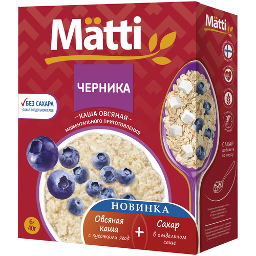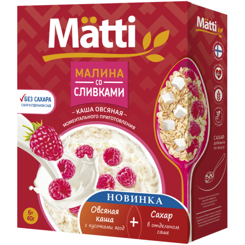 Каша овсяная Matti малина со сливками, 6 шт по 40 г