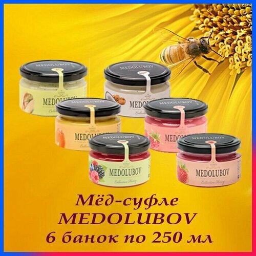 Мед суфле набор Мед-суфле Крем-мед Медолюбов MEDOLUBOV Ассорти 250 мл 6 вкусов (с фисташками)