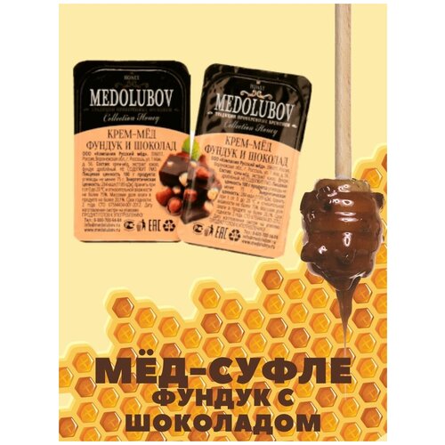 Мед-суфле медолюбов с фундуком и шоколадом порционный в подарочной упаковке блистеры (16шт)