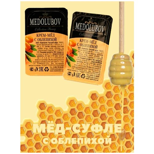 Мед-суфле медолюбов с облепихой порционный в подарочной упаковке блистеры (16шт)