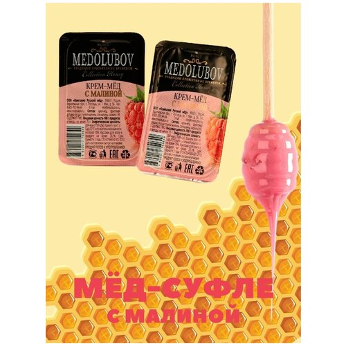 Мед-суфле медолюбов с малиной порционный в подарочной упаковке блистеры (16шт)