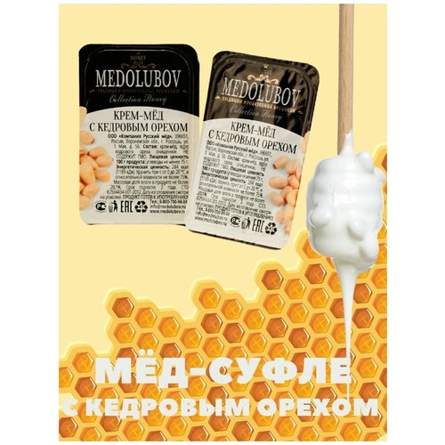Мед-суфле медолюбов с кедровым орехом порционный в подарочной упаковке блистеры (16шт)