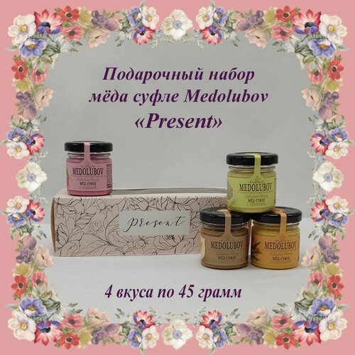 Подарочный набор для женщин на Пасху мед суфле Медолюбов Ассорти 4 вкуса по 45 гр. "Present" (розовая)