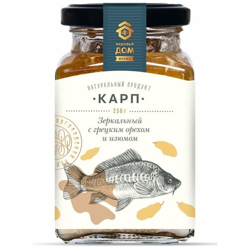 Карп зеркальный "медовый ДОМ ферма" с грецким орехом и изюмом, 250г