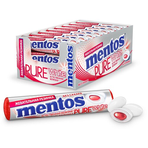 Жевательная резинка Mentos Pure White вкус Клубника, 24 шт по 15,5 г