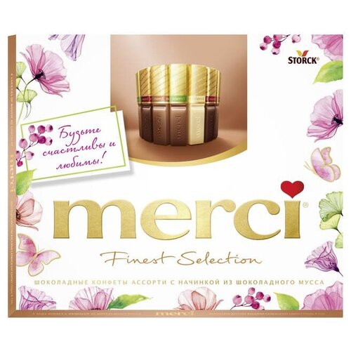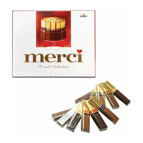 Конфеты шоколадные MERCI (Мерси), ассорти из молочного шоколада, 250 г, картонная коробка, 015416-00/35/49