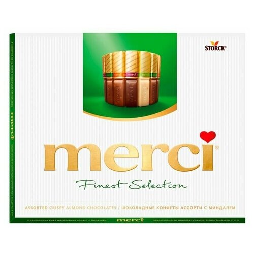 Конфеты шоколадные MERCI (Мерси), ассорти из шоколада с миндалем, 250 г, картонная коробка, 014457-20